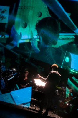 I liked the idea of having a solo percussionist caged in a small room full of amplified instruments, built and designed by myself. At first it was a practical decision, a closed room would mostly stop the natural sound of the instruments and therefore not mixing with their amplification and effects. But then it became clear to me that caging the soloist had much more to do with the need of communication from the point of view of isolation. For that I imagined a bird singing from its bird cage to other birds. Each movement of this „cage“ part is dedicated to each of the musicians, as if the soloist was having a dialog with each of them. It seems birds sing for “vanity", it is so they appear to be fit and healthy to other birds…